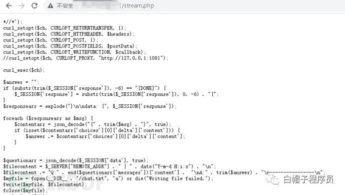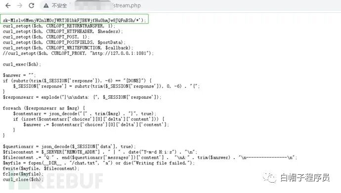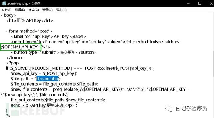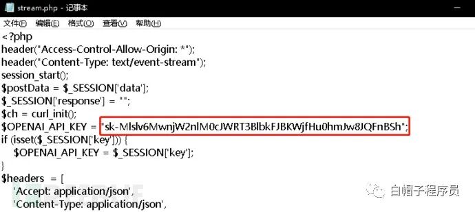 通过查看其它文件,印证了前面的推断。每次通过后台更新的Key被覆盖写入了straem.php文件里的$OPENAI_API_KEY变量中了。