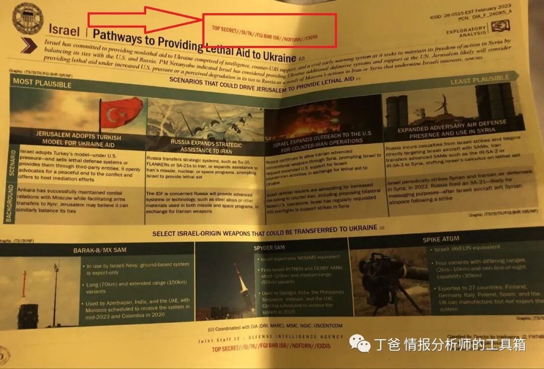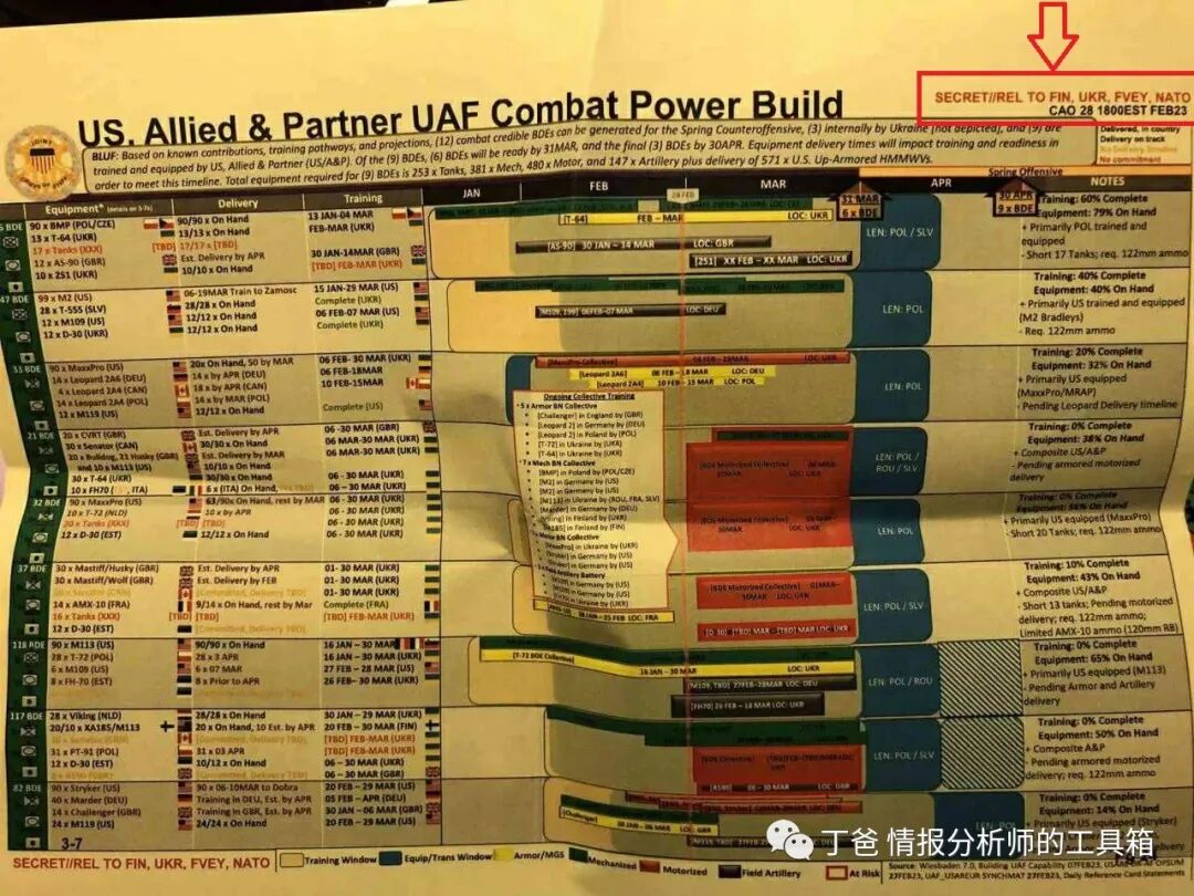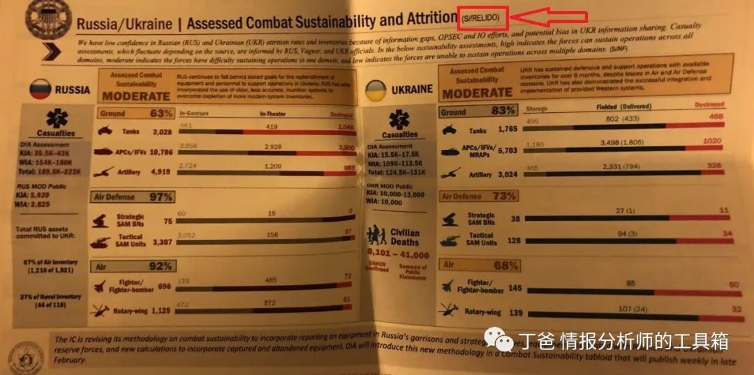 表示:该文件泄露会严重危害国家安全(SECRET),部分外国可见,包括乌克兰(UKR),五眼联盟国家(FVEY),北约国家(NATO)