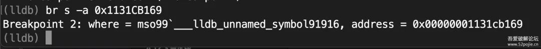 复制代码 隐藏代码 (lldb) br s -a 0x110AB0BCE