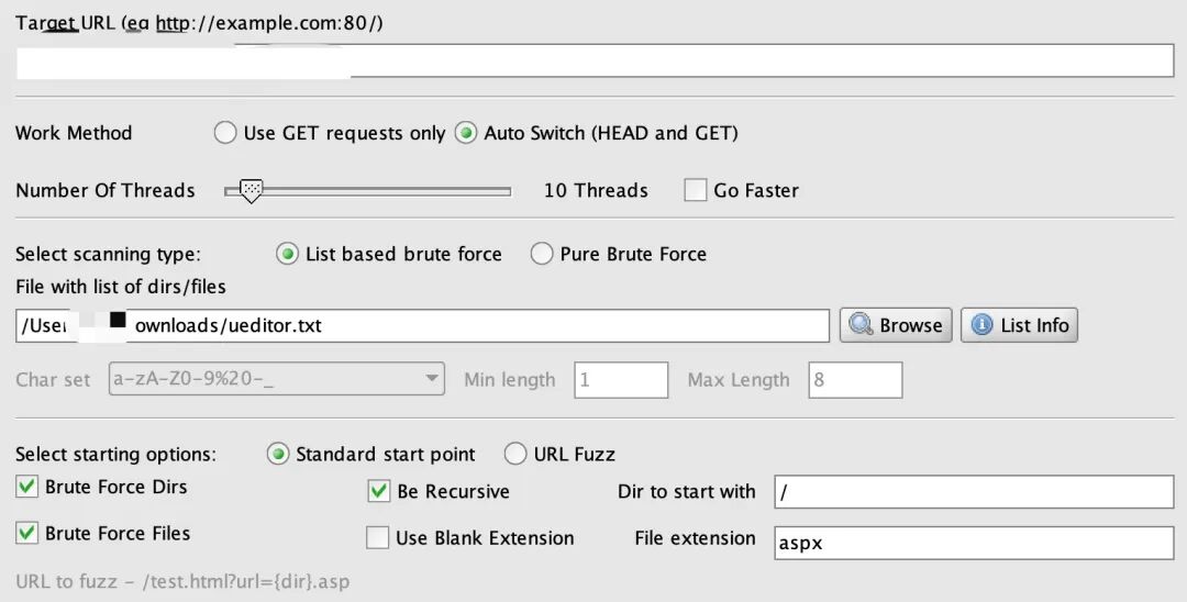 用DirBuster加载字典爆破未遂