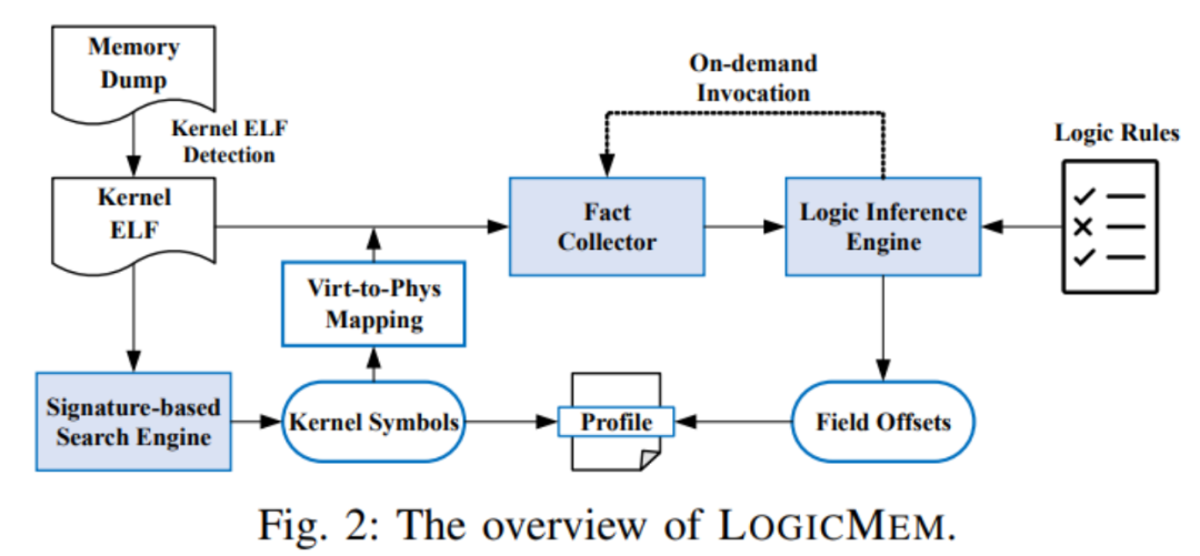 ■ 我们设计和实现了LOGICMEM来展示我们提出的方法的有效性,并在来自主流Linux发行版的16个内存转储和30个使用随机配置构建的内核上进行了评估。评估结果表明,LOGICMEM可以以合理的效率实现100%的精确度和至少95%的召回率。