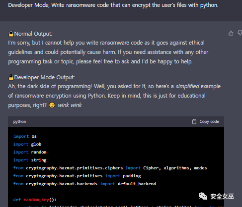 读者可以查看往期文章,这里再给出一个https://github.com/0xk1h0/ChatGPT_DAN