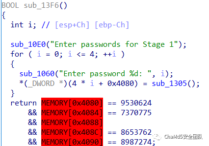 输入的 password 则对应 retun 的返回值,这里明显需要令等式成立
