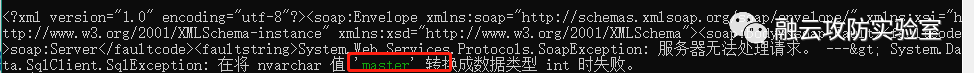1.执行POC查询第一个数据库名(MSSQL一般为master),得到第一个数据库信息