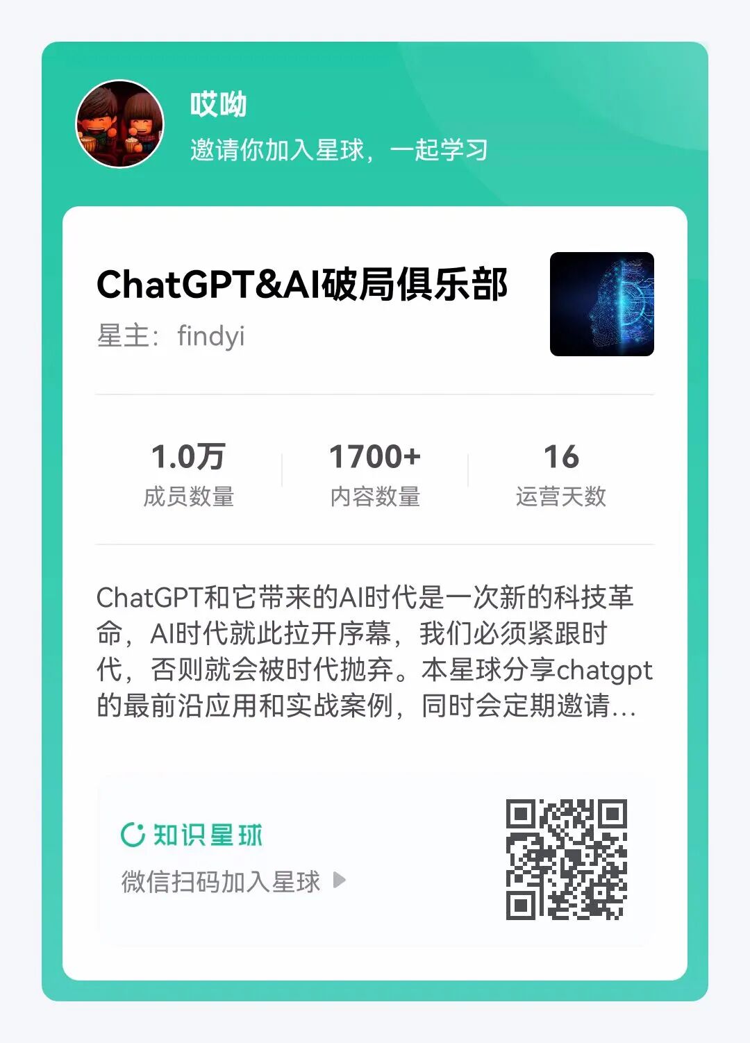 最后再推荐下我和洋哥共同创办的AI破局俱乐部星球: