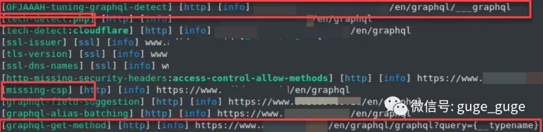 通过 Nuclei 的默认扫描,几秒钟后在众多结果中,以下结果引起了白帽小哥的注意,其中一个国家的 TLD 使用了 GraphQL,但 GraphQL 貌似做了错误配置: