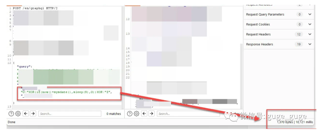 从 Nuclei 扫描中可以知道该应用程序使用 PHP 并且在 Apache 上运行,于是白帽小哥开始发送 MySQL Sleep的Payload。YES!服务器延迟响应 10.121 秒!