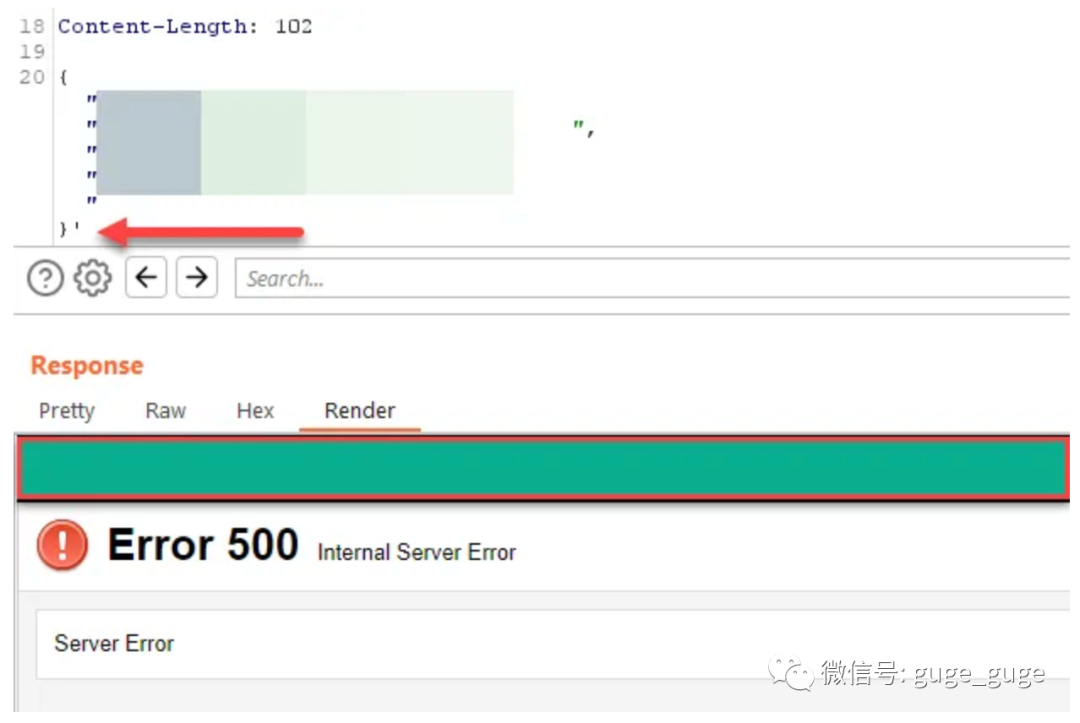 当有以上信息后,白帽小哥通常会通过 Burp Scanner 来确认,将 URL 发送到 Burp 并开始主动扫描,几分钟后,Bingoo,当在请求正文中提交单引号 (') 时,Burp 发现查询可能存在 SQL 注入。服务器响应“500 Internal Server Error”: