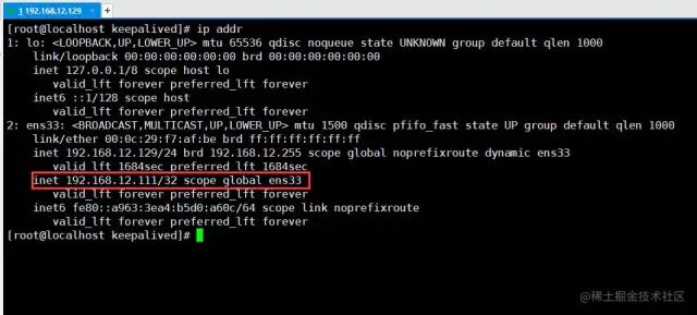 ❞keepalived服务模拟了机器断电、硬件损坏等情况(因为机器断电等情况=主机中的keepalived进程消失),然后再次查询了一下本机的IP信息,很明显会看到VIP消失了!