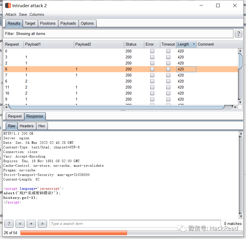 返回包显示账户名或密码错误说明绕过成功 欧耶