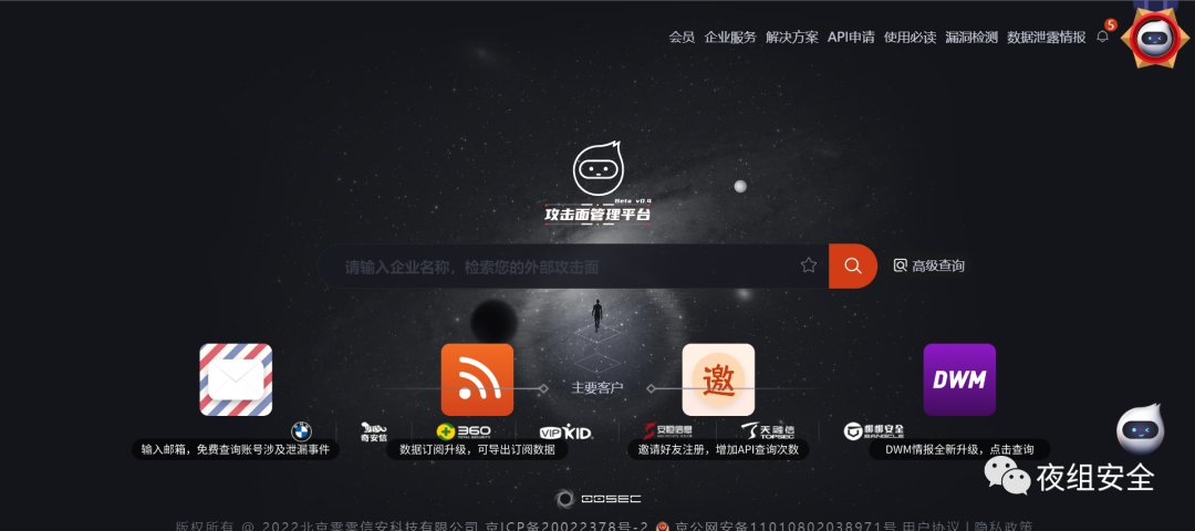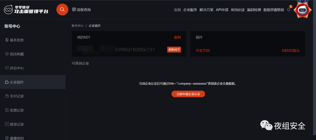 登录零零信安找到自己的KEY