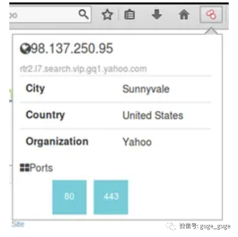 最后,Shodan 有浏览器扩展,可以在后台运行并获取所在页面的有关信息。在寻找漏洞时,我们通常会在搜索网络应用程序时寻找端口 80/443,但通常会忽略其他端口,例如 8080、8888 等。因此,在目标获得更多信息会给你带来更多发现漏洞的机会。