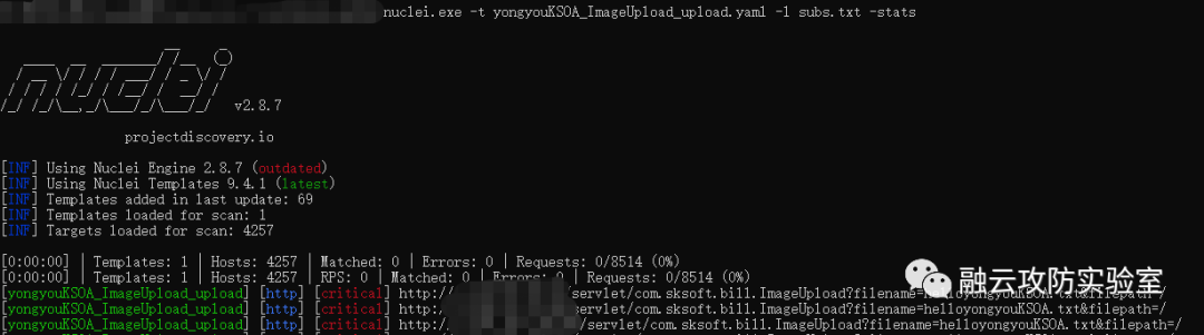 nuclei.exe -t yongyouKSOA_ImageUpload_upload.yaml -l subs.txt -stats