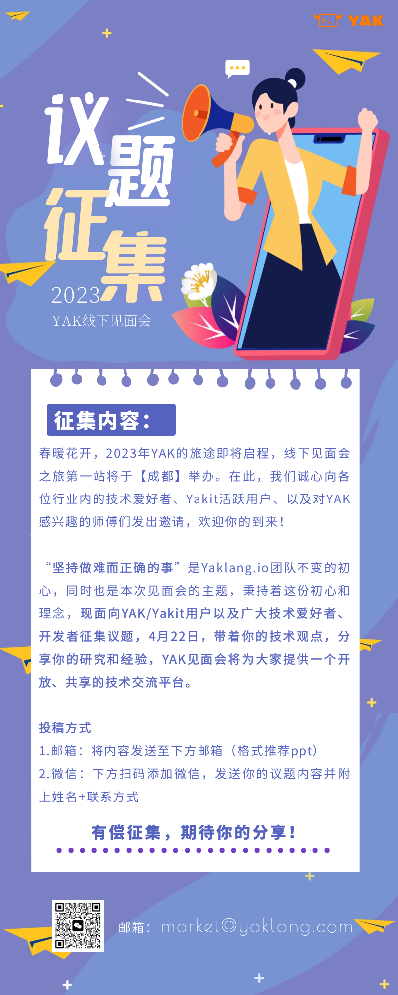 正如Yaklang.io团队“自由、开放、共享”的精神一样,在议题的选择上,只要您想分享的内容与YAK及网络安全领域相关,我们都愿意听见你的声音。