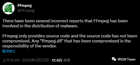 虽然两个平台的载荷形态有细微差别(Windows平台的DLL与Mac平台的dylib),但劫持对象的选择与流程上却是一致的:”利用带毒开源组件动态库FFmpeg劫持带签名的主程序“。FFmpeg是遵循GPL/LGPL开源协议的开放源代码自由软件,因其易用性与音视频处理的强大功能被软件项目广泛使用。FFmpeg项目遭受恶意代码植入的疑虑应运而生,但官方第一时间进行澄清:”FFmpeg仅提供“源代码“形式的分发,FFmpeg源代码仓库并未受到投毒攻击,任何编译为二进制形式的分发皆是厂商的自主行为。”