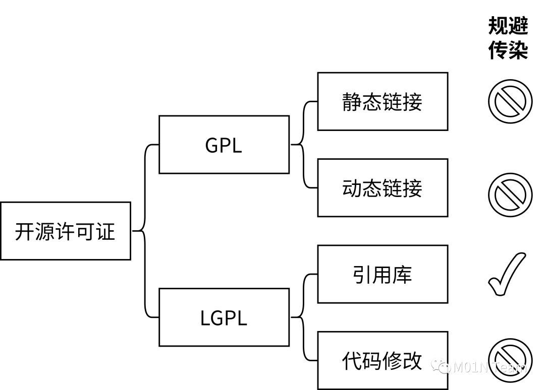 分发动态库形式的开源组件是绕过开源协议限制的常用手段。GPL等部分开源协议具有”传染性“,也即涉及GPL协议的任何源码修改使用均应开源项目代码。出于商业利益考虑,大量软件供应商会自行编译并以动态库形式分发开源组件。这种规避风险的无意之举进一步造成了以动态库形式分发的开源组件的碎片性,用户对于分散各处的库文件习以为常。即便攻击行为暴露也能借助”开源组件仓库投毒“方向的质疑分散一部分火力,也是攻击者选择开源组件动态库作为恶意代码注入对象的另一个重要原因。