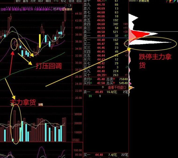 截图的逻辑提到了,浪潮本来是领涨首波人工智能的,当时与三六零不相上下,但是,随着利空的打压后,资金选择了低位拿货,我们可以从以下K线筹码峰可以看到,打开第二个跌停的当天,主力是先拿到大量的货后,然后日K线马上缩量,这说明了,当天拿货的主力,筹码是锁定的,或在随后再度通过打压方式换筹码,(先砸低,再吸回,3月7日至16日这一波打压最为明显),直接到3月22日人工智能二波时,浪潮信息也仅仅是拉一个涨停和一个大阳线,草草了结,当时,我们可以反问一下,AI大热,为何浪潮信息反而没表现了呢。如果你是主力,眼看三六零风头火势坐着市场第一的位置,如果你是主力,甘心做老二继续拉做跟风吗?显然,这是不可能的,万万不可能的。这就延伸到3月29日后我当时低吸浪潮信息的一个逻辑要点:等360结束,我来做老大!OK,现时浪潮信息又新高后,后续又开始怎么玩?我想,大家也应该明白的,你涨,我跌;我跌了,然后补涨。