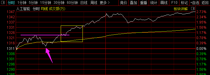 比如,上面我说的观察AI指数冲高跳水回落后又重新加强的节点,这个节点就可以是日内新开仓的锚定点。