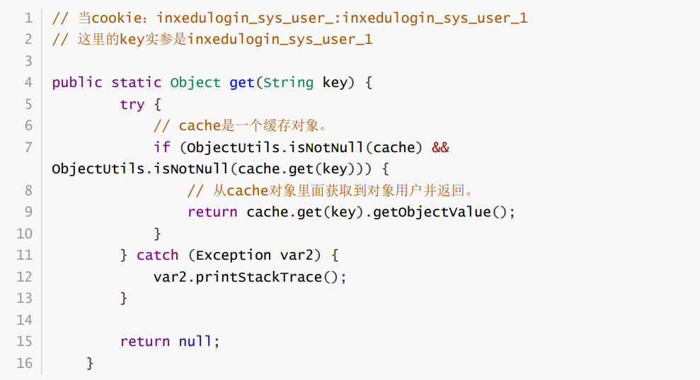 跟进到 EHCacheUtil.get(userKey) 里面看怎么获取的用户。