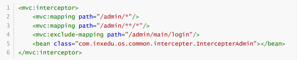 查看spring拦截器,spring-mvc.xml,可看到跟后台相关的拦截器。