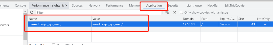 Cookie:JSESSIONID=B4EBA06858664F3FE6C1A16D5F27014D;inxedulogin_sys_user_=inxe dulogin_sys_user_1这里我们看到"inxedulogin_sys_user_"这个cookie_key,再看后面的value值“inxedulogin_sys_user_1”。