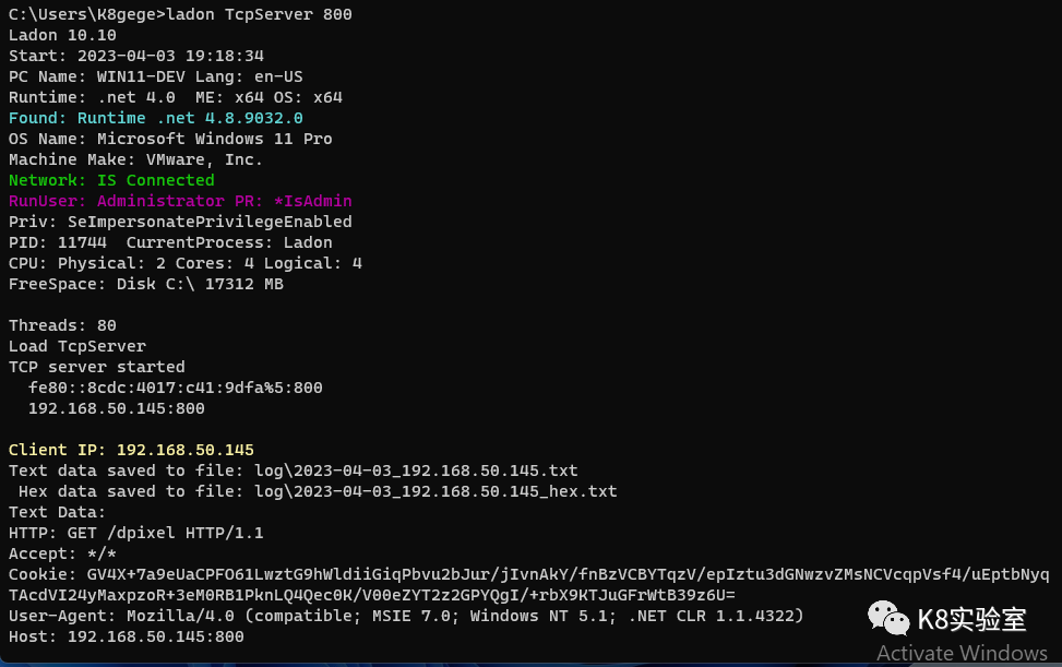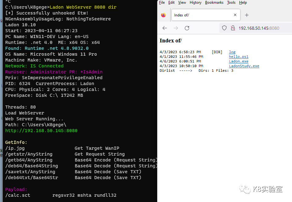 当然Ladon也有专门的WEB服务器,为了安全默认不允许列目录,加上dir我们可以列目录(没有dir没有首页,默认强制显示404,迷惑他人),方便本地搭环境时,上传下载到另一个虚拟机,如vmtools抽风没安装好时,当然内网渗透,需要传文件到目标也是同理。