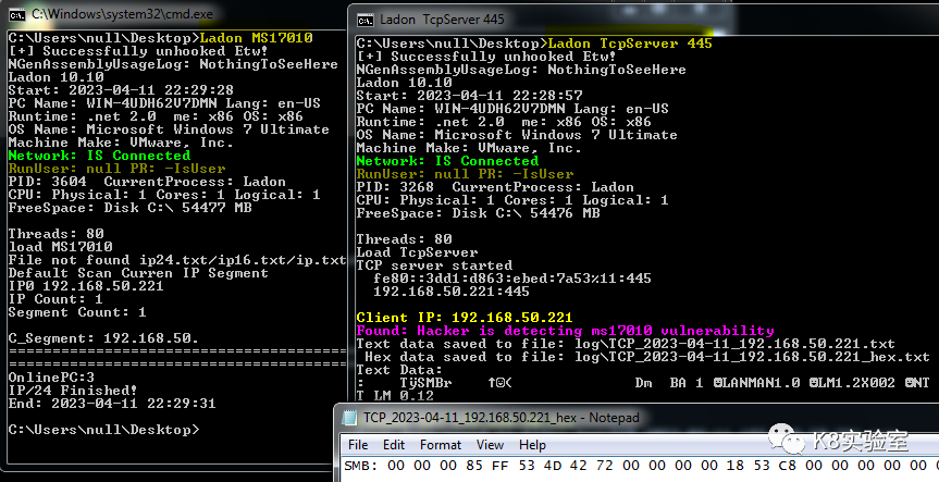 同理,我们也可以监听SMB数据,如Ladon探测MS17010所发的数据包