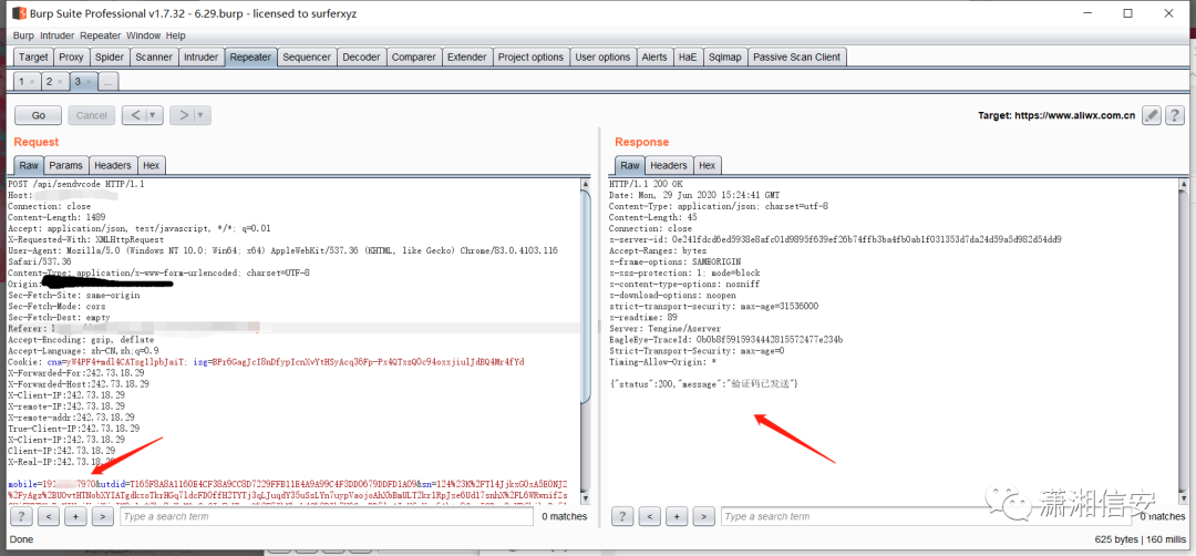 这里的测试是否可以通过xff头等绕过短信发送频率限制的插件是coolcat师傅写的burpFakeIP