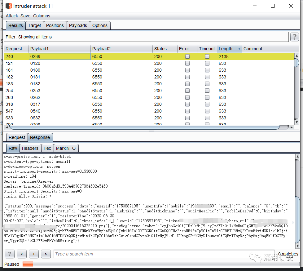 一个burp intruder跑发送验证码的,比如一个跑1371234XXXX;另一个burp intruder跑验证验证码的,然后这个跑验证码为任意一个四位数的验证码,跟着上面跑