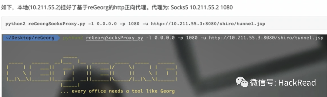 python reGeorgSocksProxy.py -p 8080 -u http://upload.sensepost.net:8080/tunnel/tunnel.jsp