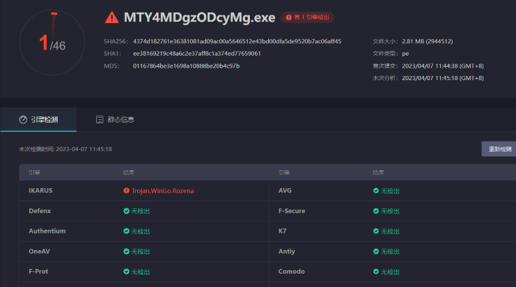 后端使用go所以身体积比较大,免杀方式使用unhook+uuid方式,请勿传VT,且用且珍羡,恐怕有后门请勿使用。
