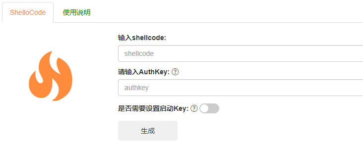 1、ShellCode:目前仅支持C的payload复制unsigned char buf[] = "xxxx" 中的payload,粘贴到shellcode中,然后点击生成即可。(复制xxx)