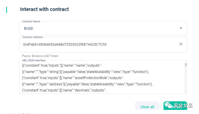 这里会自动匹配合约ABI信息,不知道的可以在合约上面查找.