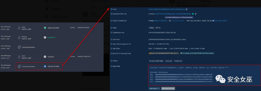 permit(address,address,uint256,uint256,uint8,bytes32,bytes3看到这里,如果看过巫巫之前的文章,巫巫使用的手法就是这种。
