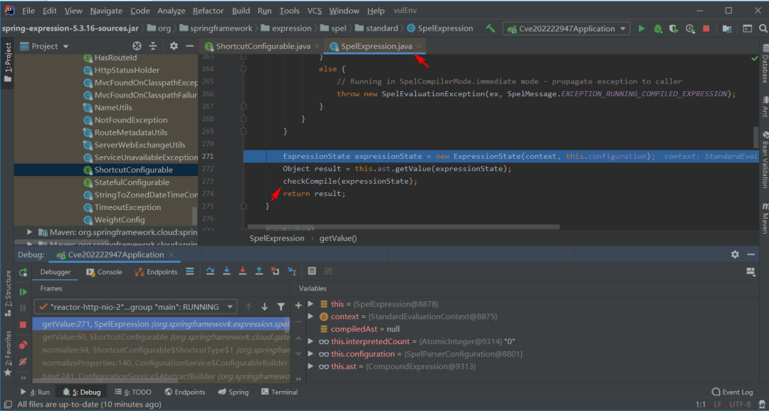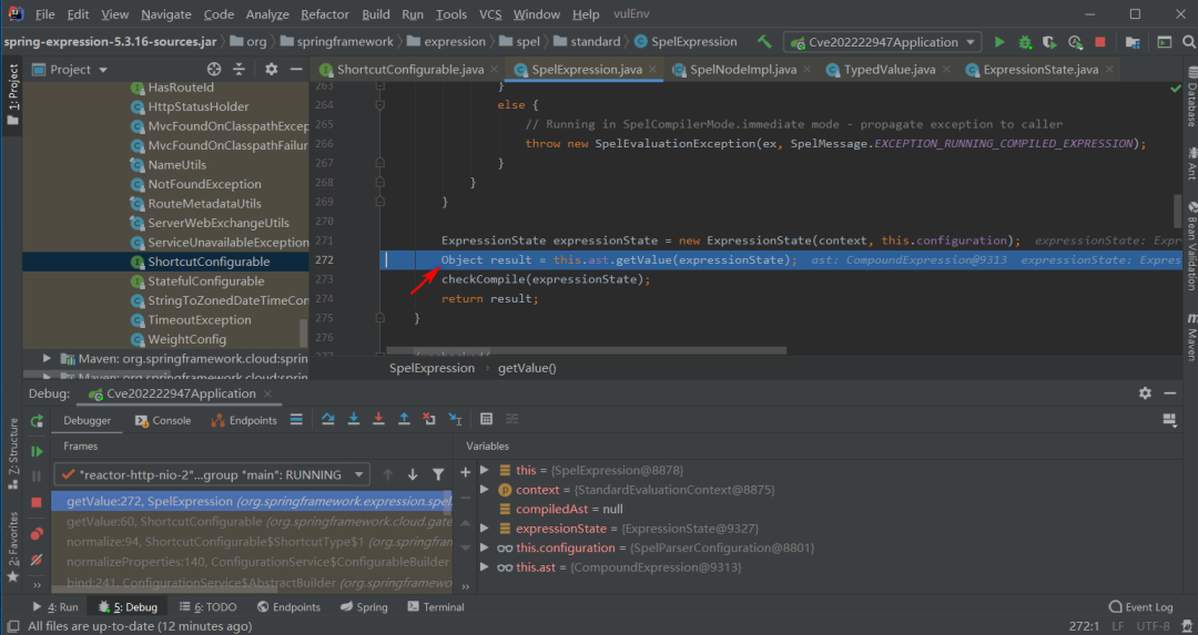 (https://github.com/XuCcc/VulEnv/tree/master/springboot/cve_2022_22947),其中pom.xml需要修改一下,idea运行即可。
