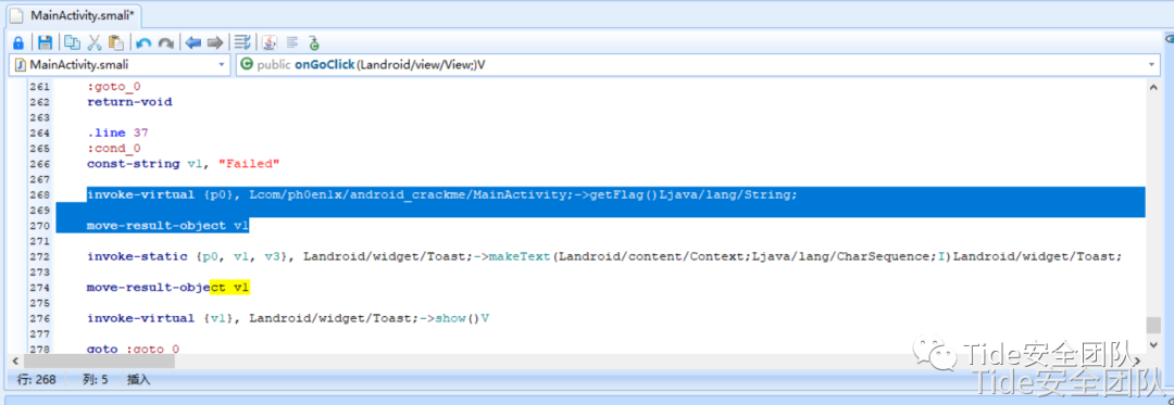 2.修改smali源码,让app显示getFlag方法的执行结果