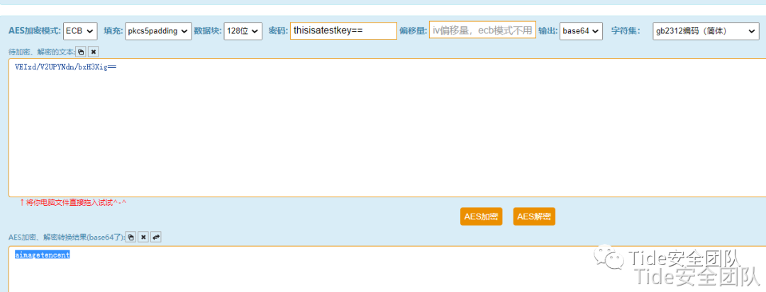 对“VEIzd/V2UPYNdn/bxH3Xig==”进行解密结果为“aimagetencent”