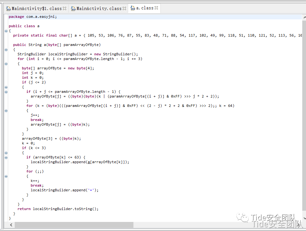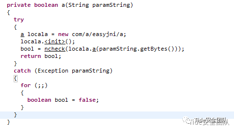 在这里参数是经过“com/a/easyjni/a”这个包里的a类new出一个实例,然后跟进a。