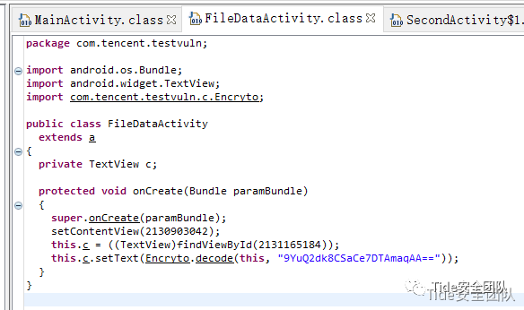 提交flag后不正确,在FileDataActivity中有一串密文,对其解密后为正确flag