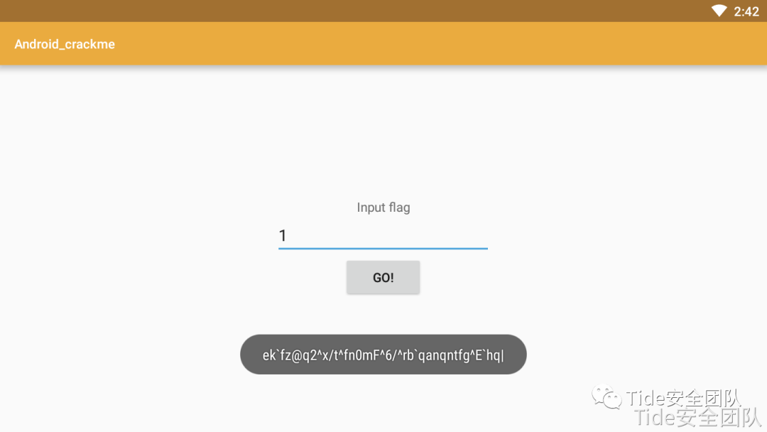 题目链接:https://adworld.xctf.org.cn/task/answer?type=mobile&number=6&grade=0&id=5091&page=1下载题目安装入模拟器,运行软件进行测试,发现输入任意文字提交提示“You are wrong! bye~”。