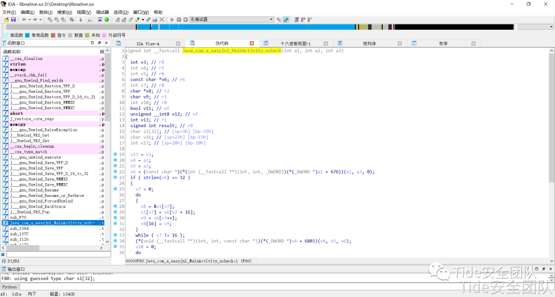 找到Java_com_a_easyjni_MainActivity_ncheck函数,F5查看伪代码
