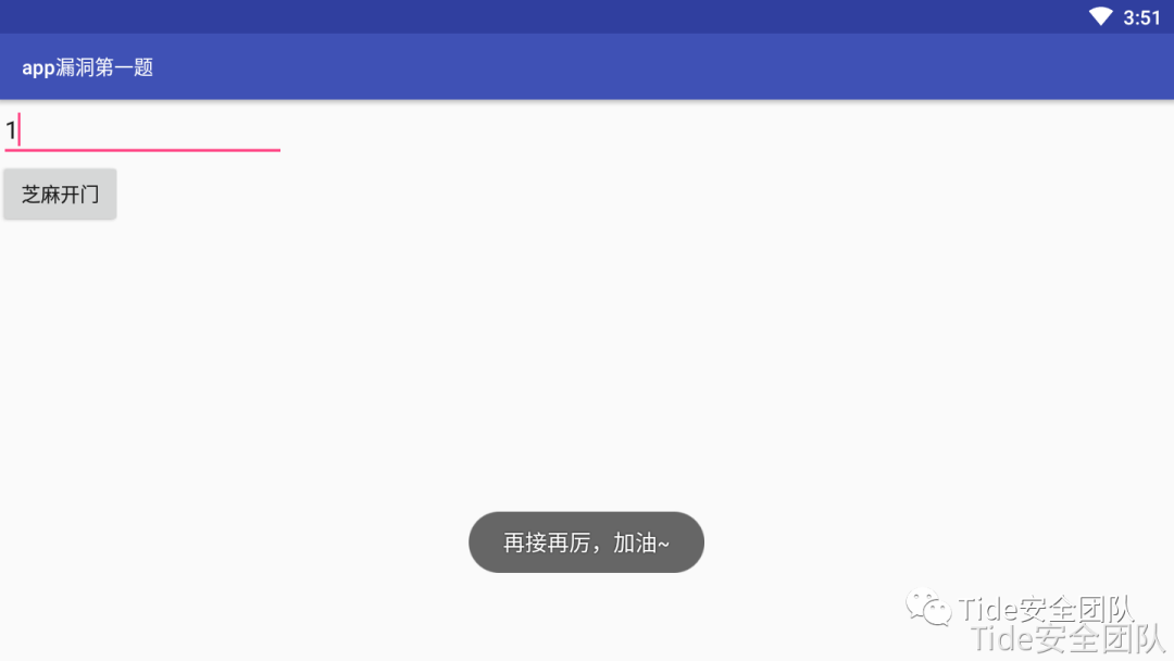 题目链接:https://adworld.xctf.org.cn/task/answer?type=mobile&number=6&grade=0&id=5085&page=1下载题目安装入模拟器,测试发现提示“再接再厉,加油~”将apk丢入Android Killer进行反编译。