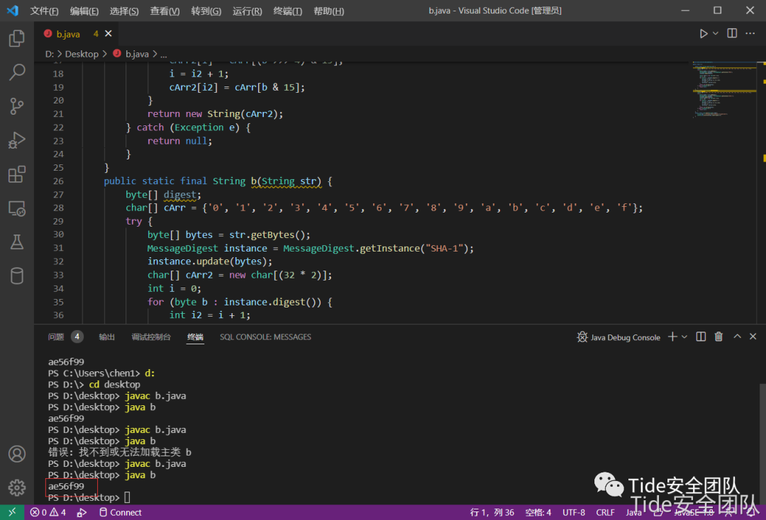 import java.security.MessageDigest;public class b {public static String a(String str) {byte[] digest;char[] cArr = {'0', '1', '2', '3', '4', '5', '6', '7', '8', '9', 'a', 'b', 'c', 'd', 'e', 'f'};try {byte[] bytes = str.getBytes();MessageDigest instance = MessageDigest.getInstance("MD5");instance.update(bytes);char[] cArr2 = new char[(16 * 2)];int i = 0;for (byte b : instance.digest()) {int i2 = i + 1;cArr2[i] = cArr[(b >>> 4) & 15];i = i2 + 1;cArr2[i2] = cArr[b & 15];}return new String(cArr2);} catch (Exception e) {return null;}}public static final String b(String str) {byte[] digest;char[] cArr = {'0', '1', '2', '3', '4', '5', '6', '7', '8', '9', 'a', 'b', 'c', 'd', 'e', 'f'};try {byte[] bytes = str.getBytes();MessageDigest instance = MessageDigest.getInstance("SHA-1");instance.update(bytes);char[] cArr2 = new char[(32 * 2)];int i = 0;for (byte b : instance.digest()) {int i2 = i + 1;cArr2[i] = cArr[(b >>> 4) & 15];i = i2 + 1;cArr2[i2] = cArr[b & 15];}return new String(cArr2);} catch (Exception e) {return null;}}public static void main(String[] args){String two = ("Stra1234"+a("Stra1234")+"yaphetshan");System.out.println(b(two).substring(0,7));}}