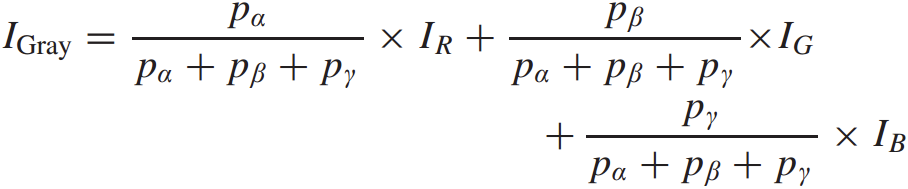 其中IR、IG和IB分别表示输入的红色、绿色和蓝色通道,三个参数pα、pβ、pγ是由颜色转换网络学习的。