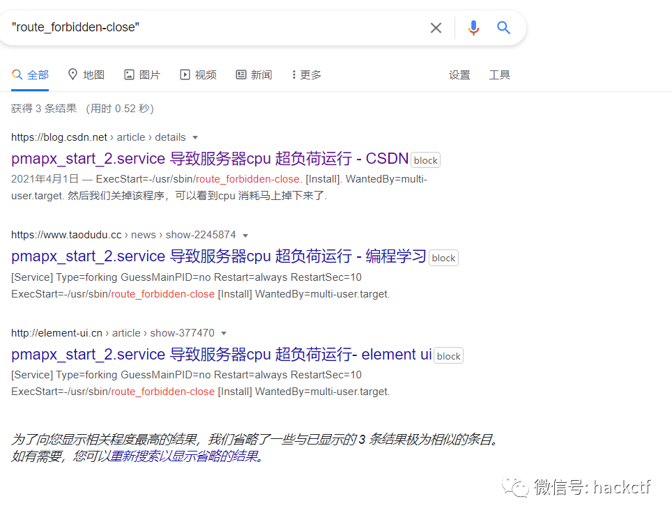 SEGV让他异常退出,看看有没有coredump,从coredump分析。因为似乎并没有配置coredump的策略,不过也不是不能用,限于较懒+不是我的服务器,不能乱搞。程序异常退出后,在 /var/spool/abrt可以看到正在保存过程中的 coredump文件,等他dump完成之后会移动到其他地方,拼个手速赶在系统删掉他之前把他复制一份。environ可以看到里面有该文件的路径 /usr/bin/ab06174bf1和另一个路径 /usr/sbin/route_forbidden-closeenviron的话我为啥还要费力的给他发SEGV让他段错误,直接去/proc/翻就行了55555 :)upx 字样,正常程序肯定不会用upx的。可能这也是逃过我们刚刚的find+strings组合的原因了。cat /usr/lib/systemd/system/pmapx_start_2.service