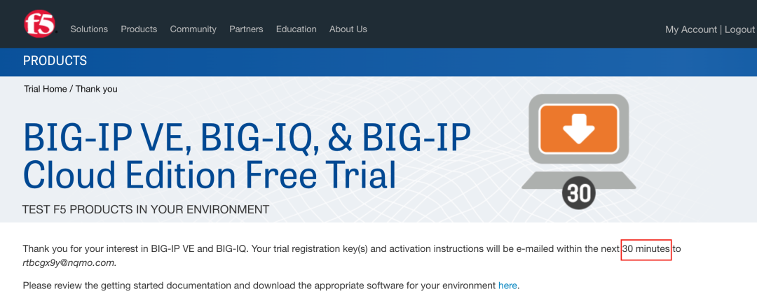 之后就可以等着了,发临时授权得30分钟左右,在这段时间可以去下载虚拟机安装的ova链接,https://downloads.f5.com/esd/product.jsp?sw=BIG-IP&pro=big-ip_v15.x