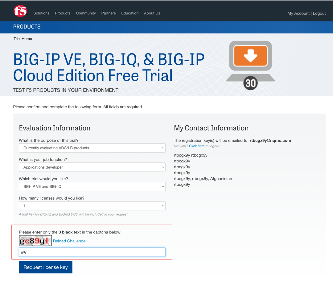复制到浏览器打开,设置密码即可,自动跳转或者打开链接https://downloads.f5.com/trial/申请试用授权,验证码的地方是让输入黑色的字母