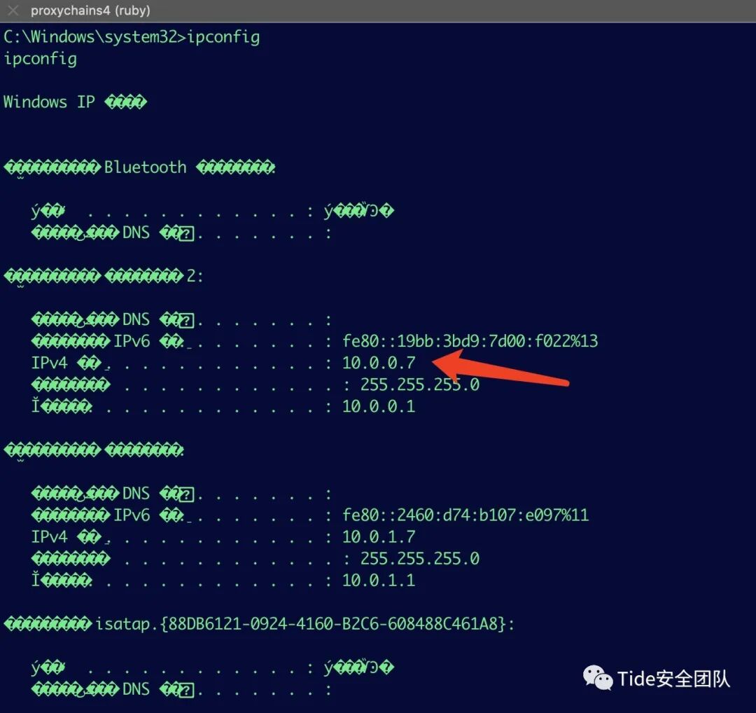 通过查询该服务器ipconfig发现存在10.0.0.7网段